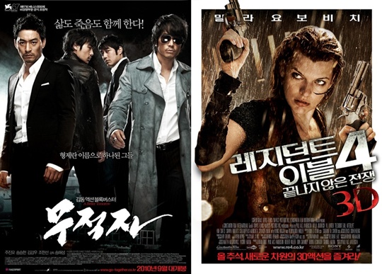 추석시즌에 개봉에 한국 영화를 중 1위를 달리던 송승헌 주연의 ‘무적자’가 3D로 제작된 할리우드 액션 대작 ‘레지던트 이블4:끝나지 않은 전쟁 3D’(이하 레지던트 이블4)를 꺾었다.