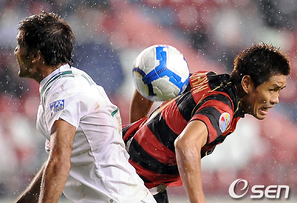 후반 포항 설기현과 조바한 타레비가 공중볼을 다투고 있다./soul1014@osen.co.kr