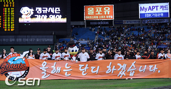 경기 종료 후 롯데가 준플레이오프 출정식 갖고 있다./soul1014@osen.co.kr