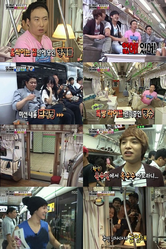 26일 오후 방송된 MBC 예능프로그램 ‘일요일 일요일 밤에-뜨거운 형제들’(이하 뜨형)에서는 ‘움직이는 집 2-나홀로 집에’ 편으로 2호선 한 칸에 집을 마련하고, 미션을 수행한 후 처음에 탄 지하철로 돌아오는 게임을 진행했다.