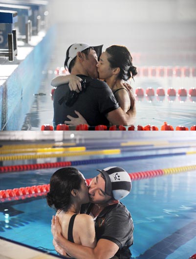 차가워진 수영장 물 때문에 엄태웅과 차예련은 따뜻한 물을 부어주며 서로를 챙기는 모습을 보여줬다. 그러다가도 박형기 PD의 큐 사인이 떨어지면 이내 키스 장면을 연출했다.