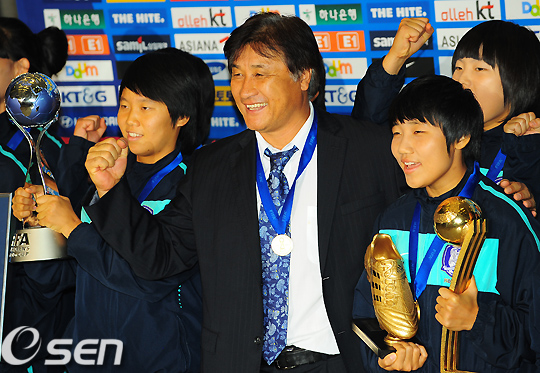 일본과 승부차기까지 가는 접전 끝에 우승컵을 들어올린 '소녀시대'들은 모두 밝은 얼굴이었다. 최 감독을 비롯해 금메달을 목에 걸고 환한 웃음으로 취재 열기를 즐겼다.