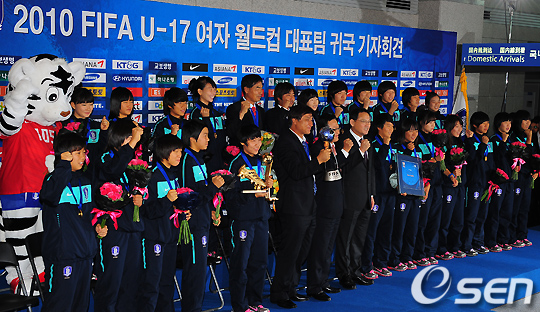'2010 FIFA U-17 여자 월드컵'서 우승을 차지한 여자 청소년대표팀이 28일 오후 인천공항을 통해 금의환향했다.