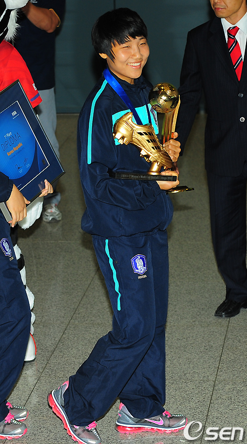 '2010 FIFA U-17 여자 월드컵'서 우승을 차지한 여자 청소년대표팀이 28일 오후 인천공항을 통해 금의환향했다.
