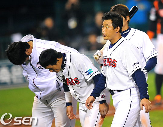 경기후 패배한 두산 선수들이 팬들에게 인사를 하며 그라운드를 나서고 있다. / jpnews@osen.co.kr