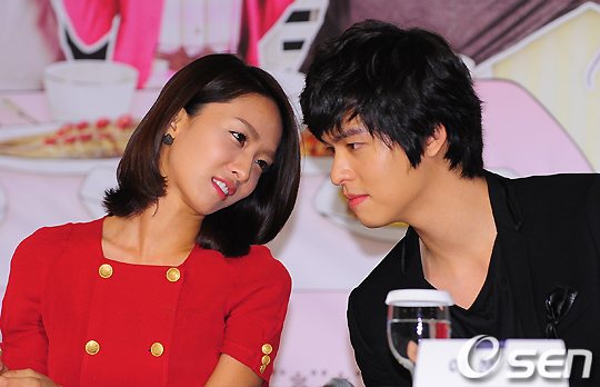박정아와 이장우가 기자회견중 얘기를 나누고 있다./rumi@osen.co.kr