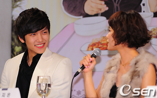 기자회견중 지창욱이 극중 연인인 오지은을 바라보며 환하게 미소짓고 있다./rumi@osen.co.kr