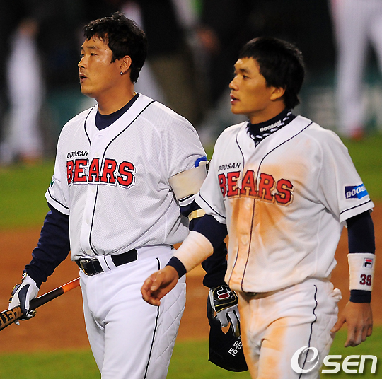 경기후 패배한 두산 김동주 이종욱이 그라운드를 나서고 있다. / jpnews@osen.co.kr