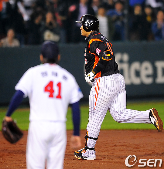 10회초 1사 1,2루에서 롯데 이대호가 결승 스리런 홈런을 날리고 그라운드를 돌고 있다. / jpnews@osen.co.kr