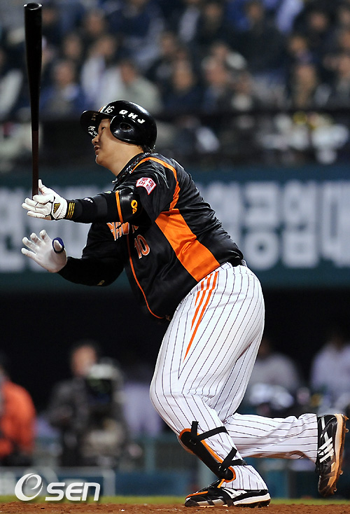 타석에 들어선 이대호는 초구 볼을 골라낸 뒤 2구째 좌측 폴대 근처의 커다란 홈런성 파울 타구를 날리며 타격감을 조율한 뒤 3구째 포크볼(124km)를 통타해 극적인 홈런포를 쏘아 올렸다. 자신과 승부를 위해 앞선 타자 조성환을 고의 사구로 골라낸 모습을 두 눈으로 똑똑히 목격한 이대호의 자존심을 건 홈런포였다.