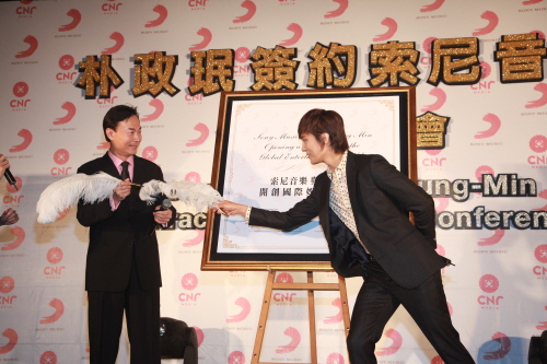 박정민은 30일 오후 2시(현시시간) 대만 타이베이 포모사(Formosa) 호텔에서 소니 뮤직과 정식으로 계약을 체결하는 모습을 공개, 국제무대로의 진출을 알렸다.