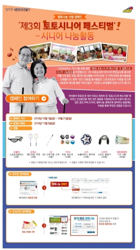 스포츠토토, 행복나눔 캠페인 실시…제3회 시니어 페스티벌-시니어 나눔활동 지원. 일련번호 등록하면 기부금 적립하는 방식…추첨 통해 푸짐한 선물 증정