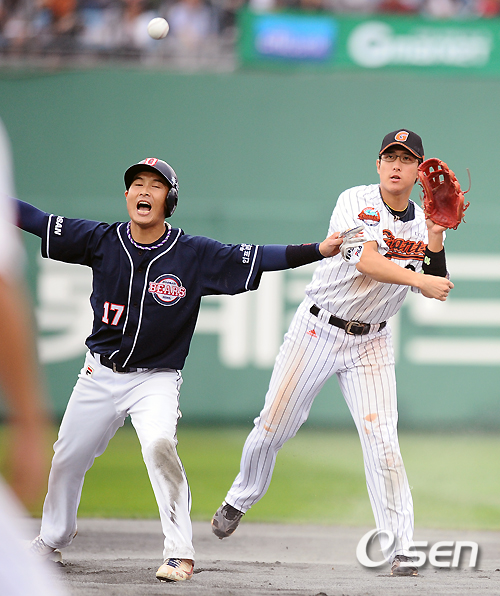 2일 부산 사직 경기장에서 열린 '2010 CJ 마구마구 프로야구 준플레이오프 3차전' 두산 베어스와 롯데 자이언츠 경기 8회초 무사 1루 ㅣ손시헌 내야땅볼때 롯데 황재균 유격수가 1루 주자 임재철을 2루에서 포스아웃 병살 처리시키고 있다./ ajyoung@osen.co.kr