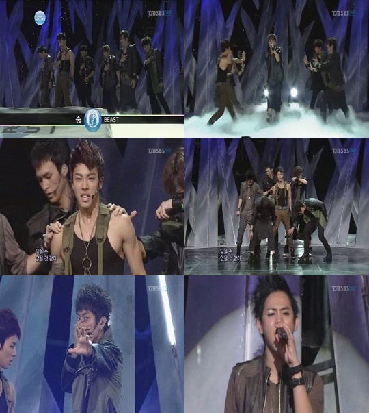 3일 오후 방송된 ‘인기가요’를 통해 컴백 무대를 가진 비스트는 그동안 이미지와는 다른 발라드곡 ‘주먹을 꽉 쥐고’를 선보인 후 타이틀곡 ‘숨’을 공개했다.