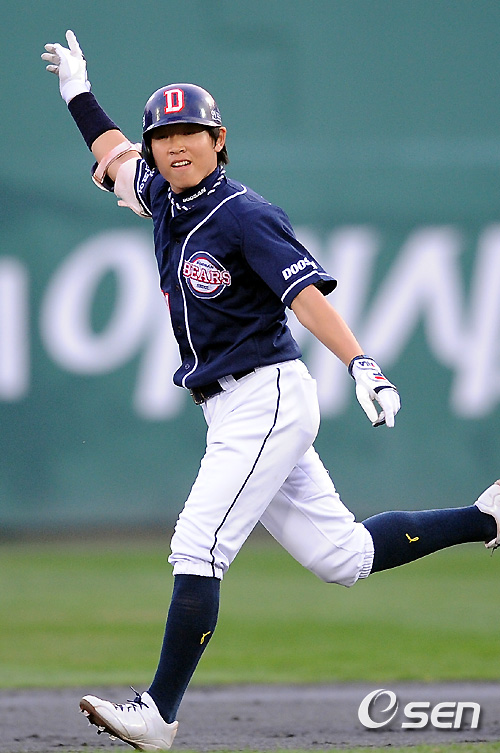 3일 부산 사직구장에서 열린 '2010 CJ마구마구 프로야구' 준플레이오프 4차전 롯데 자이언츠와 두산 베어스의 경기 9회초 1사 2,3루 두산 고영민 대타로 타석에 들어선 정수빈이 우월 3점 홈런을 날리고 베이스를 돌며 환호하고 있다. / soul1014@osen.co.kr