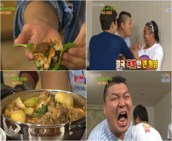 '1박2일' 강호동이 눈 앞에서 멀어져가는 야식 메뉴들을 바라보며 광분했다.
