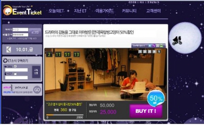 그 중 눈길을 끄는 마켓은 E.T(이벤트 티켓)다. 온라인 마케팅, 언론사, 레저분야 등 다양한 경력을 가진 마케팅 전문가들로 구성된 이벤트 티켓은 5일 본격적인 서비스를 앞두고 공개된 예고편만으로 방문자가 폭주, 트래픽 용량을 대대적으로 증설하여 화제가 되고 있다.