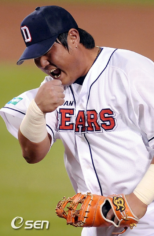5일 잠실구장에서 열린 '2010 CJ마구마구 프로야구' 준플레이오프 5차전 두산 베어스와 롯데 자이언츠의 경기 2회초 1사 1루 롯데 가르시아의 타구를 두산 최준석 1루수가 라인드라이브로 바로 잡고 1루 주자 홍성흔을 포스아웃시킨뒤 환호하고 있다. / soul1014@osen.co.kr
