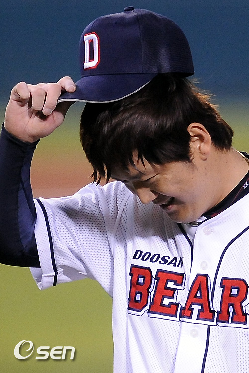 5일 잠실구장에서 열린 '2010 CJ마구마구 프로야구' 준플레이오프 5차전 두산 베어스와 롯데 자이언츠의 경기 3회초 2사 만루 롯데 조성환을 내야땅볼 아웃처리시킨 두산 선발투수 김선우가 안도의 한숨을 쉬며 마운드에서 내려오고 있다 / soul1014@osen.co.kr