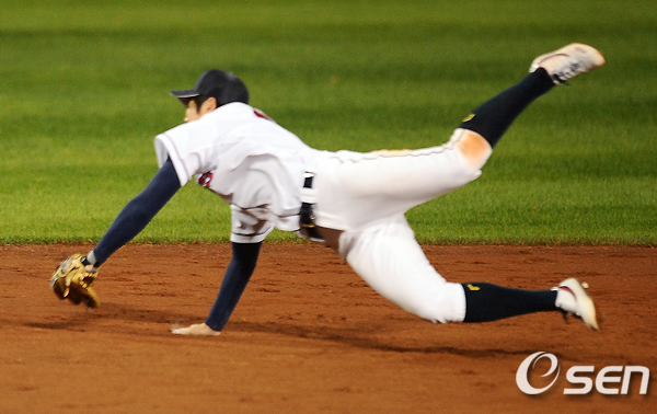 9회초 2사 박종윤의 3루 강습타구를 두산 이원석 3루수가 라인드라이브 아웃 처리시키고 있다./ ajyoung@osen.co.kr