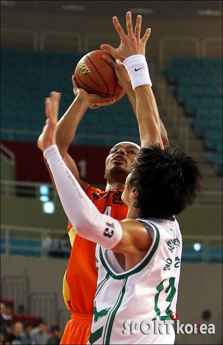 문태종은 경기 초반 수비가 강한 동부의 윤호영에 막히며 외곽에서 슛찬스를 갖지 못했다.