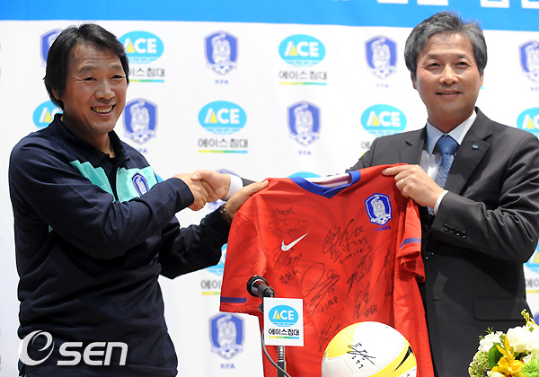 이날 조인식에는 KFA 김진국 전무이사와 대표팀의 조광래 감독, 차두리, 이청용, 에이스침대 장준기 상무 등이 참석했다.