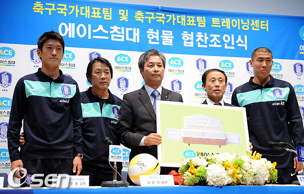 이날 조인식에는 KFA 김진국 전무이사와 대표팀의 조광래 감독, 차두리, 이청용, 에이스침대 장준기 상무 등이 참석했다.
