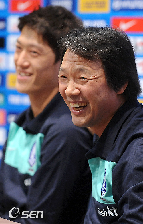 훈련에 앞서 조광래 감독이 인터뷰 중 미소 짓고 있다. /soul1014@osen.co.kr