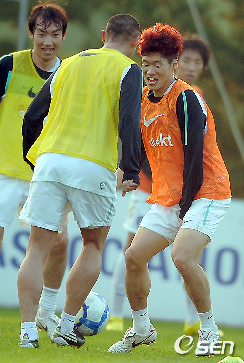박지성과 차두리가 패스게임을 하고 있다. /soul1014@osen.co.kr