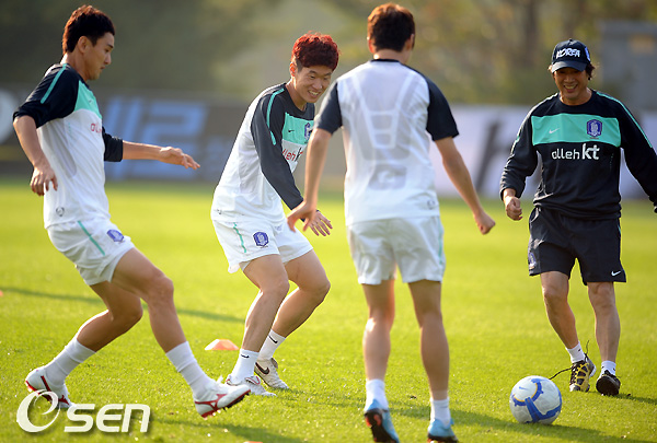 이어진 연습서 공격수와 미드필더 뿐만 아니라 수비수인 이정수와 김영권도 중원허리서 공을 주고 받으며 상대 진영으로 파고 들어 중거리슛을 연결했다.