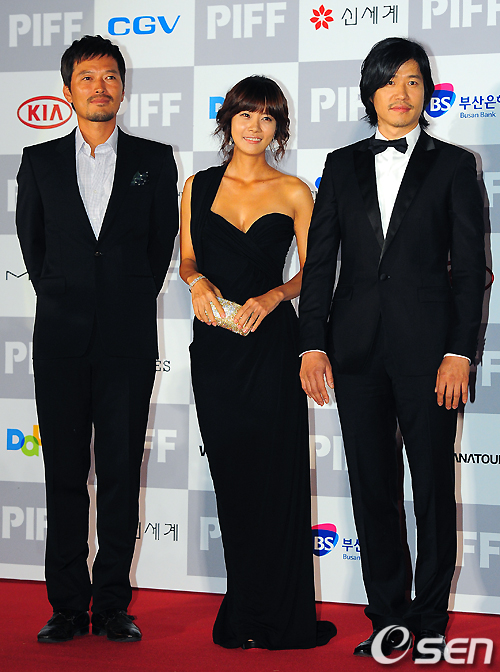 정준호-한지혜의 사회로 해운대 수영만 요트경기장 야외 상영장에서 화려한 개막식이 열려 정재영 유선 유준상이 포토월에서 포즈를 취하고 있다. /jpnews@osen.co.kr