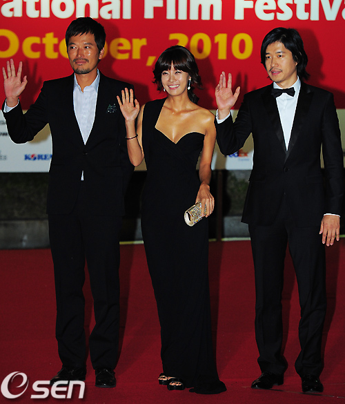 정준호-한지혜의 사회로 해운대 수영만 요트경기장 야외 상영장에서 화려한 개막식이 열려 정재영 유선 유준상이 레드 카펫을 밟고 있다. /rumi@osen.co.kr