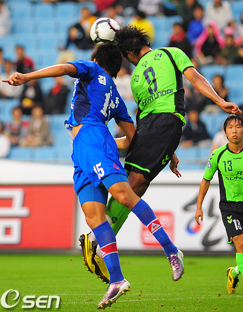 195cm가 넘는 울산 김신욱과 전북 심우연이 전반전서 공중볼을 다투고 있다.. /jpnews@osen.co.kr
