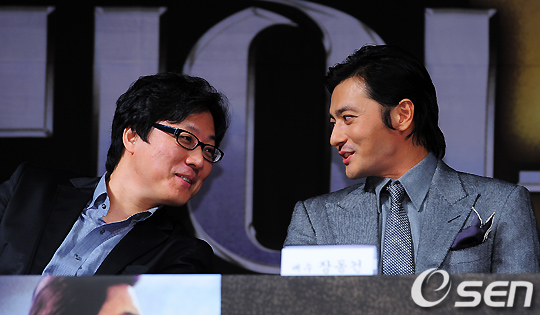 기자회견중 이승무 감독과 장동건이 얘기를 나누고 있다./rumi@osen.co.kr
