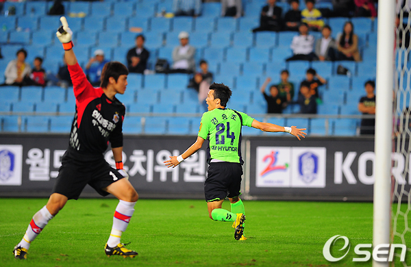 전북은 9일 오후 울산 문수월드컵경기장에서 열린 쏘나타 K리그 2010 25라운드 울산 현대와 원정 경기에서 이동국의 결승골에 힘입어 1-0으로 승리했다.