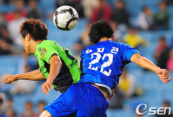 후반 전북 이동국과 울산 김치곤이 공중볼을 다투고 있다. /jpnews@osen.co.kr