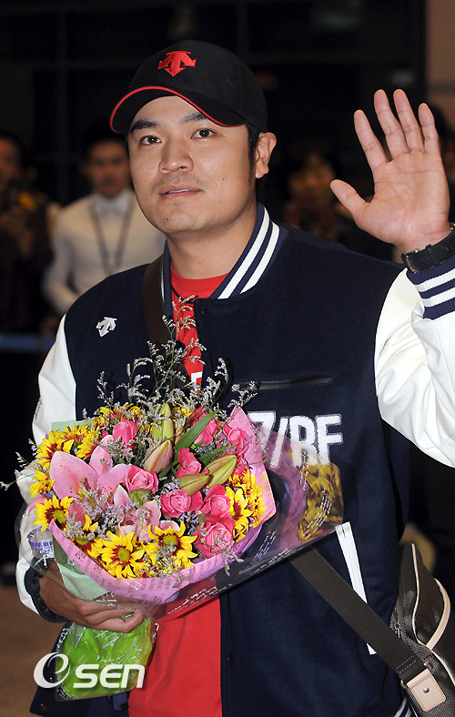 광저우에서 열리는 아시안게임 국가대표 훈련에 동참하기 위해 메이저리거 추신수(28.클리블랜드 인디언스)가 10일 오후 인천국제공항을 통해 입국했다