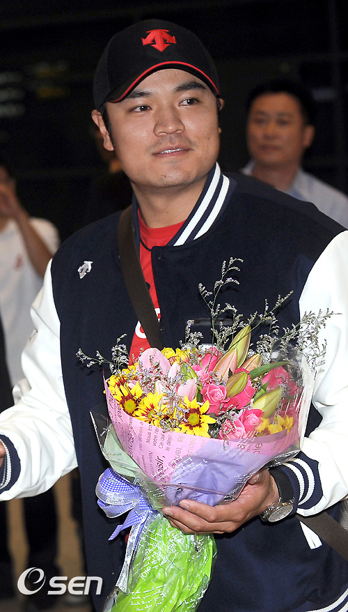 광저우에서 열리는 아시안게임 국가대표 훈련에 동참하기 위해 메이저리거 추신수(28.클리블랜드 인디언스)가 10일 오후 인천국제공항을 통해 입국했다