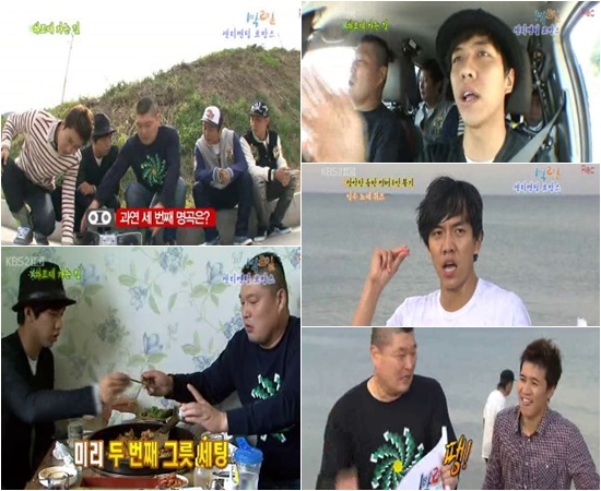 '1박2일'은 더 이상 여행을 떠나고 복불복을 하고 입수를 하고 먹고 자는 단순한(?) 포맷을 보여주지 않는다. 언제부터인가 매 여행마다 각기 다른 테마가 있고, 그것을 효과적으로 살리기 위한 게임이나 퀴즈 등이 끼어든다. 지난 번 서울 특집에는 북촌 8경을 사진기에 담아오는 미션이 있었고 외국인 관광객들을 즉석에서 섭외해 게임을 함께 하기도 했다.