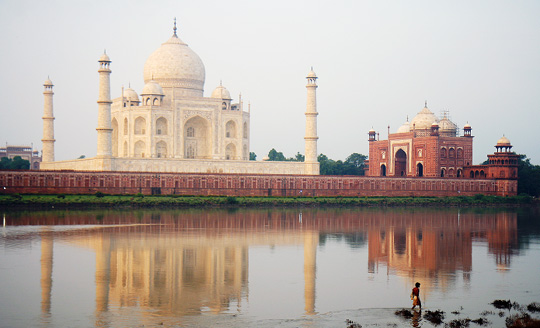 무엇보다 새벽에는 태양이 바쁘게 각도를 바꾸기 때문에 붉고 푸르고 새하얀 타지마할을 한꺼번에 만날 수 있다. 야무나강에 비친 타지마할은 빼놓을 수 없는 보너스 풍경이다.