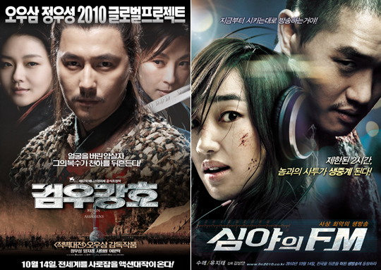 서로 사랑하지만 적이 될 수 밖에 없는 두 주인공의 운명처럼 정우성과 수애는 각자의 신작 영화를 들고 스크린에서 맞붙게 된다. 두 사람은 10월 14일 동시에 개봉을 앞둔 영화 ‘검우강호’와 ‘심야의 FM’의 주인공으로 기존의 모습과는 달라진 새로운 캐릭터로 변신하여 더욱 눈길을 모은다.