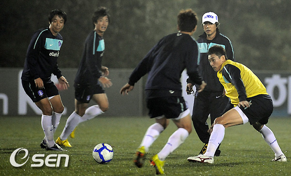 대표팀의 훈련은 미니 청백전으로 펼쳐졌다. 한일전에 나설 주전으로 예상되는 조끼팀은 최전방 공격수로 박주영(AS 모나코)이 나섰다. 그리고 오른쪽 공격수인 이청용(볼튼)이 왼쪽으로 자리를 옮기면서 박지성의 공백을 메우기 위한 첫 번째 움직임이 시작됐다.