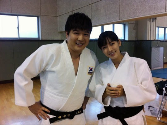 극중 유도선수로 출연 중인 신동은 흰색 유도복을 입고 있고 극중 태릉선수촌 주치의로 나오는 김소연도 흰색 유도복을 입고 한하게 미소를 짓고 있다.