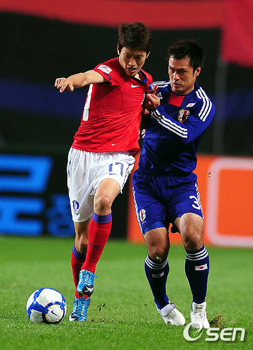 전반 이청용을 일본 고마노가 파울로 저지하고 있다. /spjj@osen.co.kr