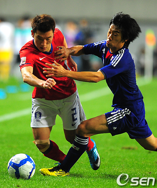 전반 한국 최효진이 일본의 가가와의 방해를 받으며 드리블하고 있다. /jpnews@osen.co.kr