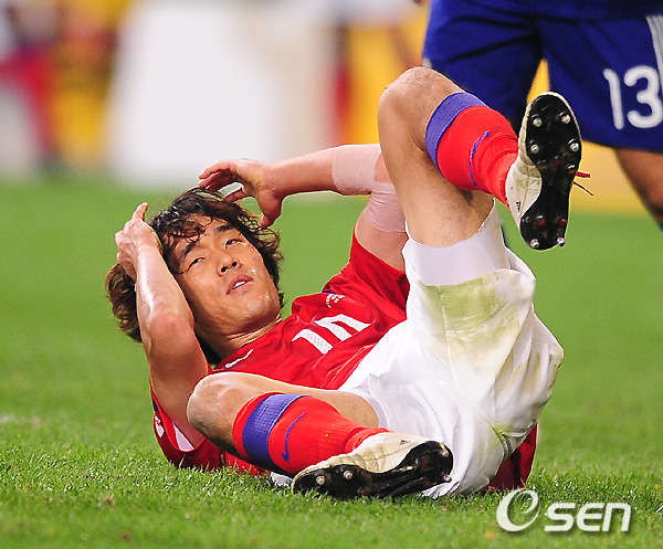 후반 결정적인 헤딩슛이 골키퍼 정면으로 가자 박주영이 아쉬워 하고 있다. /spjj@osen.co.kr