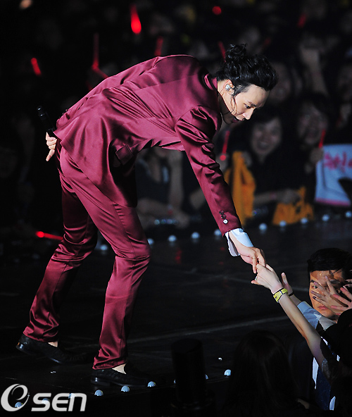 JYJ의 유천이 공연 중 팬과 악수를 나누고 있다./rumi@osen.co.kr