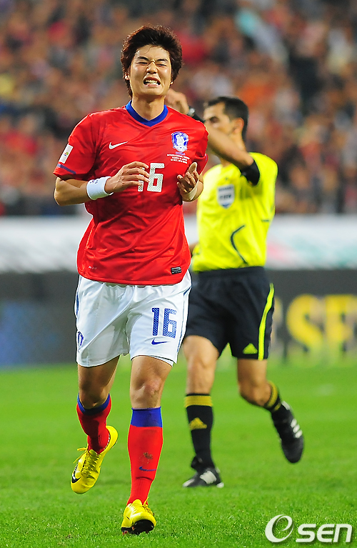 후반 한국 기성용이 슈팅이 빗나가자 아쉬워하고 있다. /jpnews@osen.co.kr