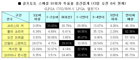 국내 골프팬들은 LPGA 'CVS/파머시 LPGA 챌린지'에서 폴라 크리머의 언더파 가능성을 가장 높게 점치고 있는 것으로 나타났다.