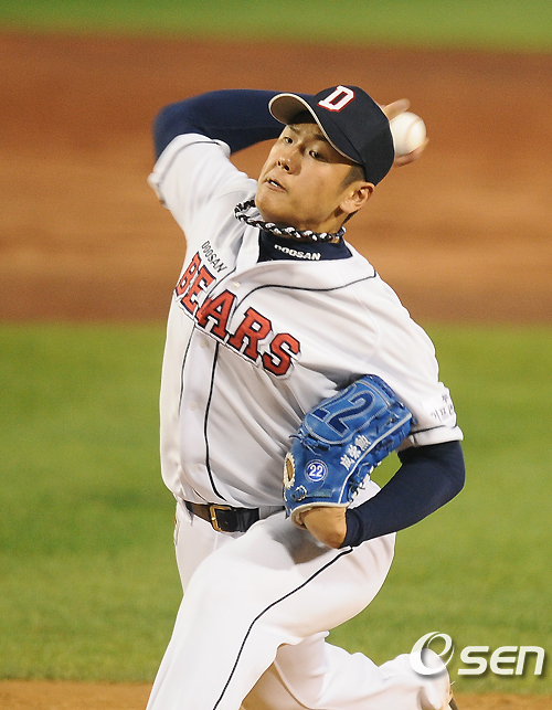 지난 11일 삼성과의 플레이오프 4차전서 1⅔이닝 동안 피안타 없이 무실점 호투를 펼치며 가능성을 높였던 2년차 우완 성영훈(20. 두산 베어스)이 팔꿈치 미세 통증으로 인해 대구에서 열리는 5차전 원정길에 오르지 못했다.